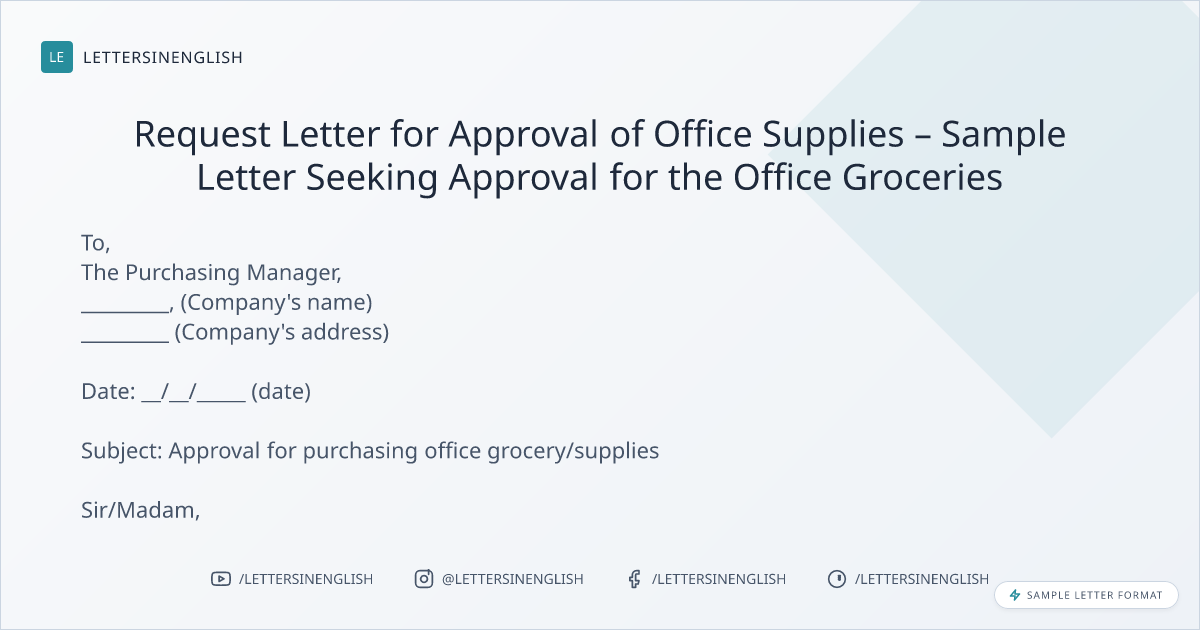 Request Letter for Approval of Office Supplies – Sample Letter Seeking Approval for the Office Groceries