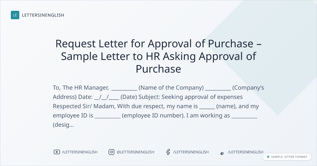 Request Letter for Approval of Purchase – Sample Letter to HR Asking Approval of Purchase