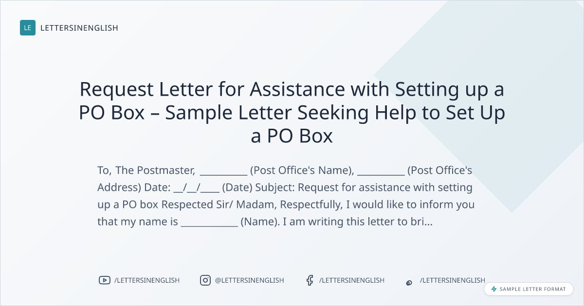 Request Letter for Assistance with Setting up a PO Box – Sample Letter Seeking Help to Set Up a PO Box