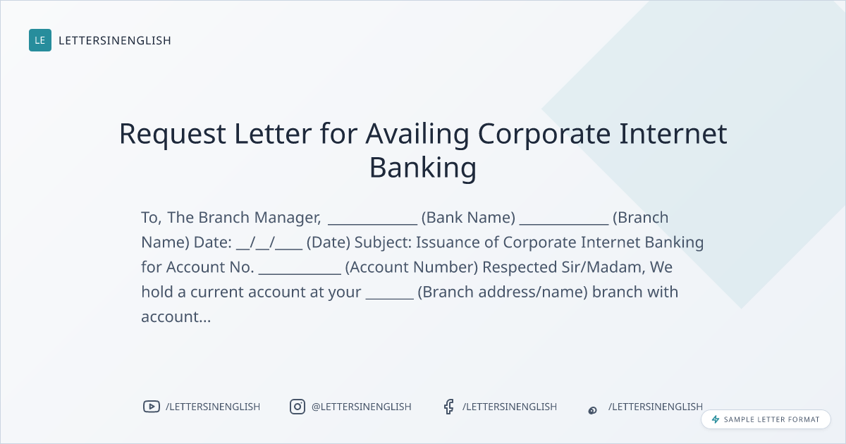 Subject: Issuance of Corporate Internet Banking for Account No. ____________ (Account Number)