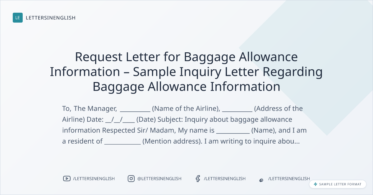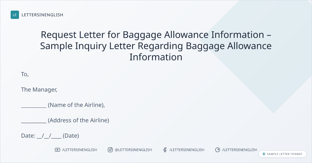 Request Letter for Baggage Allowance Information – Sample Inquiry Letter Regarding Baggage Allowance Information