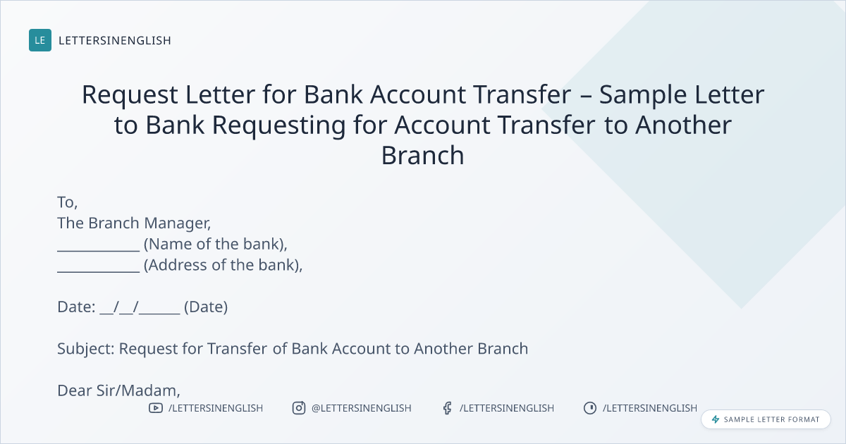 Request Letter for Bank Account Transfer – Sample Letter to Bank Requesting for Account Transfer to Another Branch