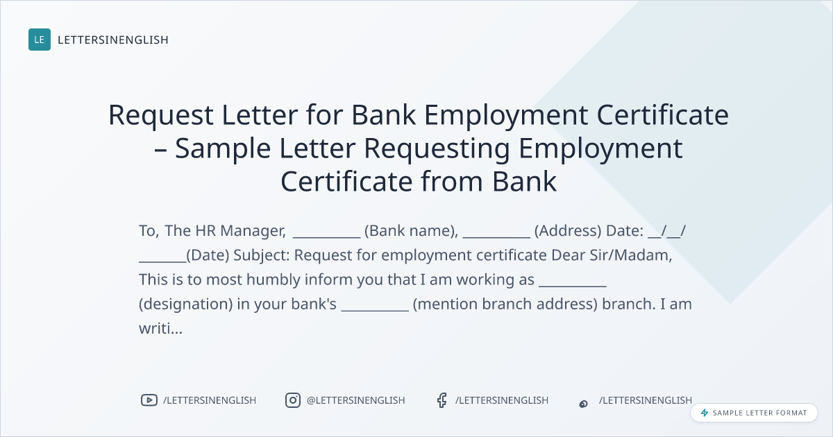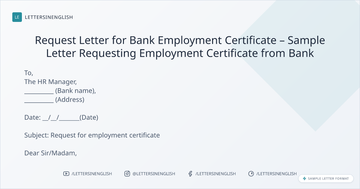Request Letter for Bank Employment Certificate – Sample Letter Requesting Employment Certificate from Bank