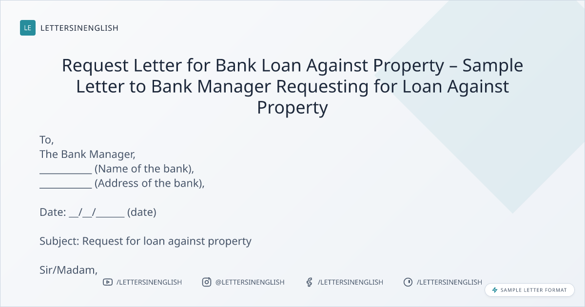 Request Letter for Bank Loan Against Property – Sample Letter to Bank Manager Requesting for Loan Against Property