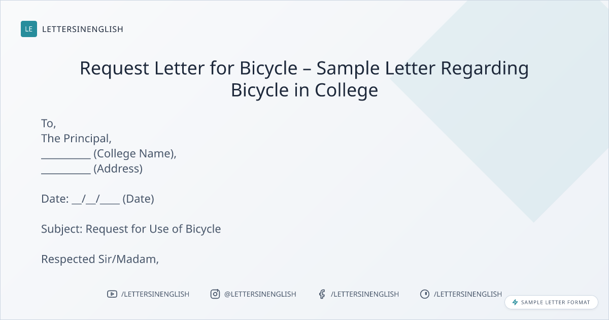 Request Letter for Bicycle – Sample Letter Regarding Bicycle in College