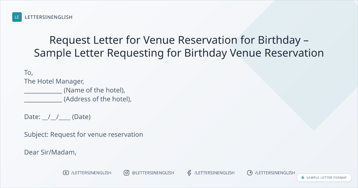 Sample Letter for Venue Reservation for Birthday