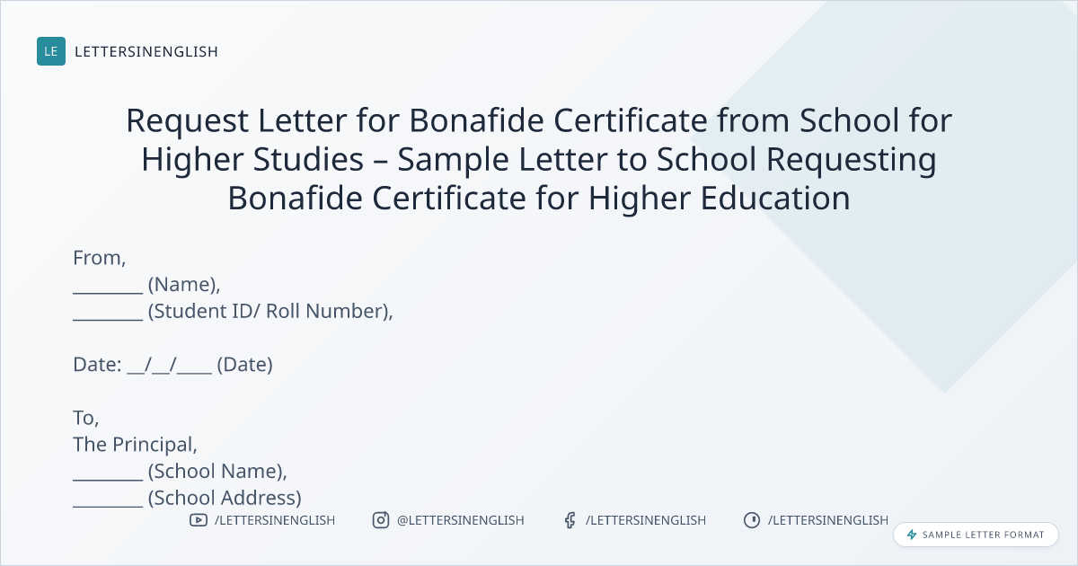 Request Letter for Bonafide Certificate from School for Higher Studies – Sample Letter to School Requesting Bonafide Certificate for Higher Education