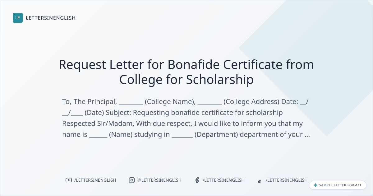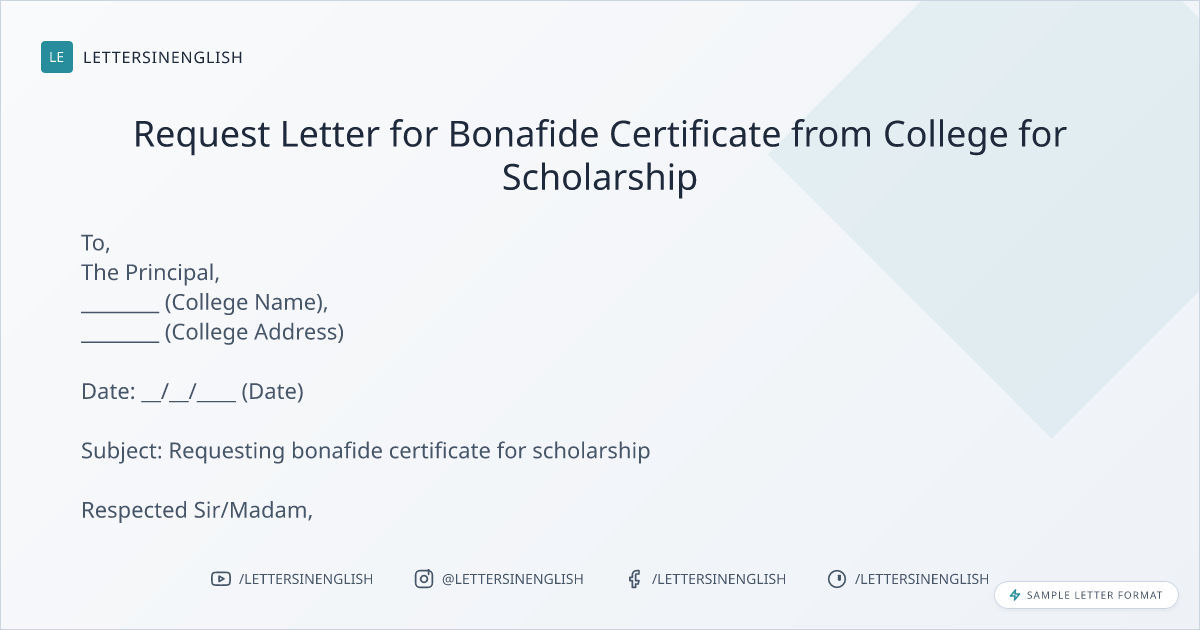 Request Letter for Bonafide Certificate from College for Scholarship