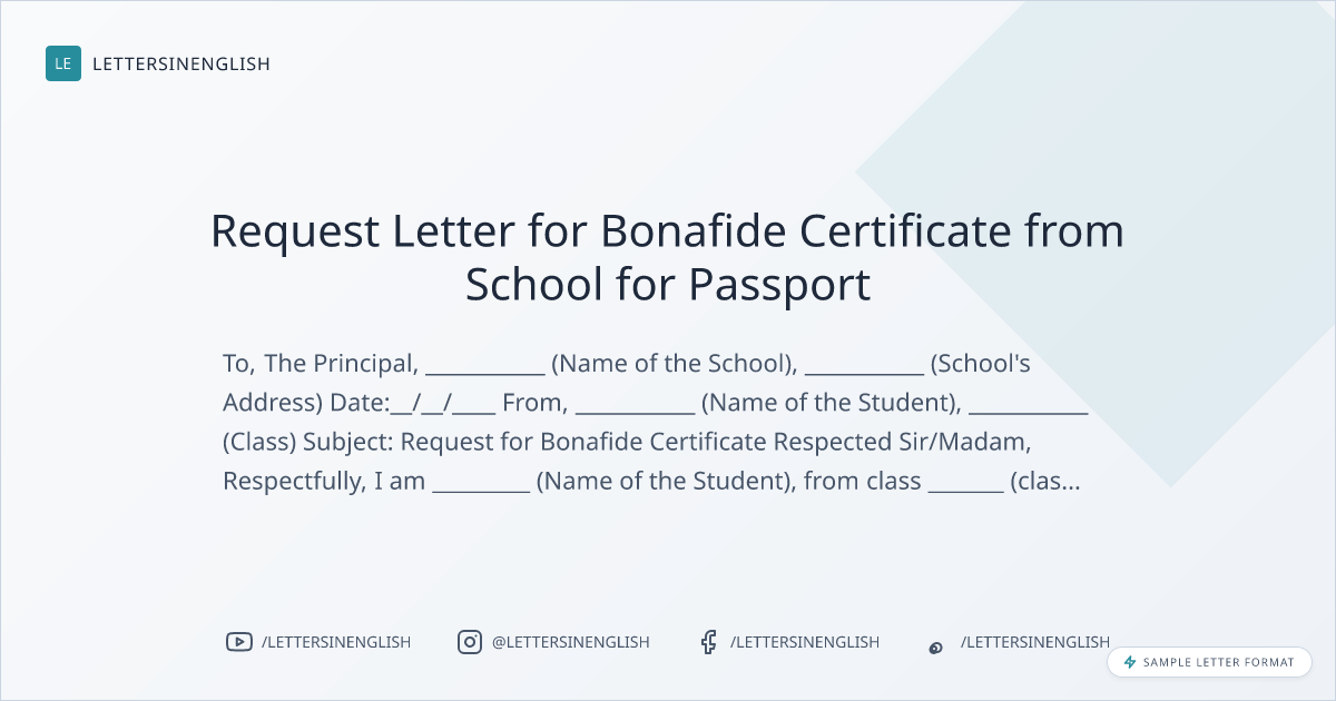 I am writing this letter to you in order to request you issue me a Bonafide Certificate. I need the Bonafide Certificate for the application of passport scheduled on __________ (date). Kindly find all Certificates and Identification Proofs attached along with this letter for your perusal.