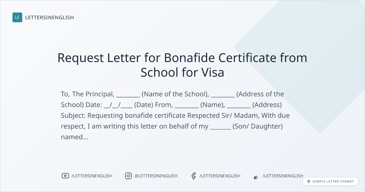 Request Letter for Bonafide Certificate from School for Visa