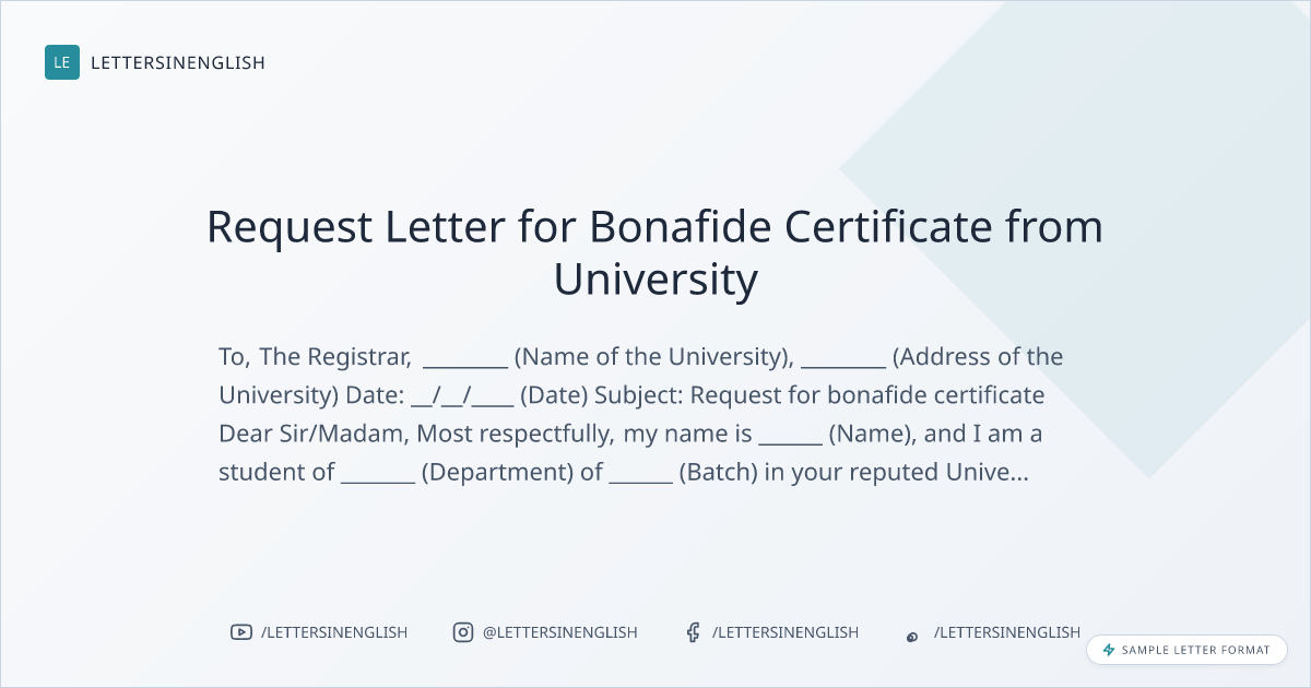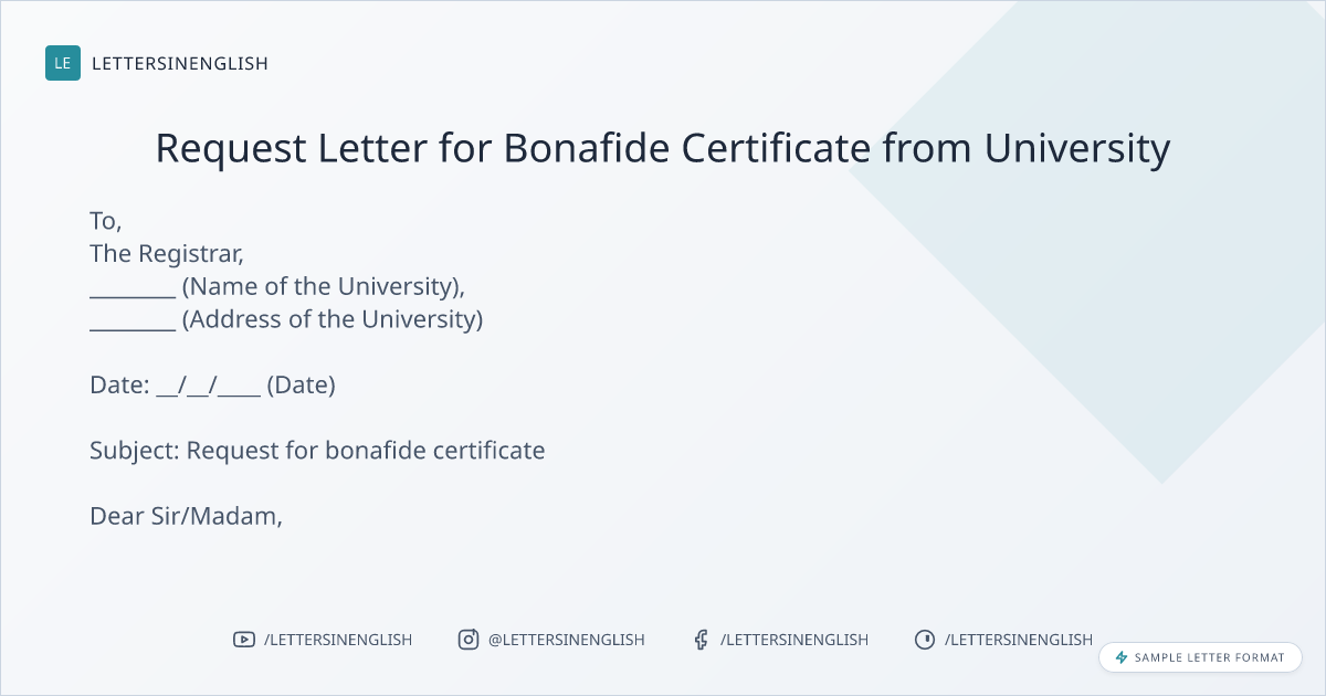 Request Letter for Bonafide Certificate from University