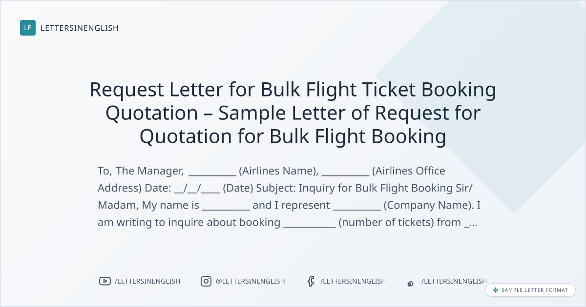 Request Letter for Bulk Flight Ticket Booking Quotation – Sample Letter of Request for Quotation for Bulk Flight Booking