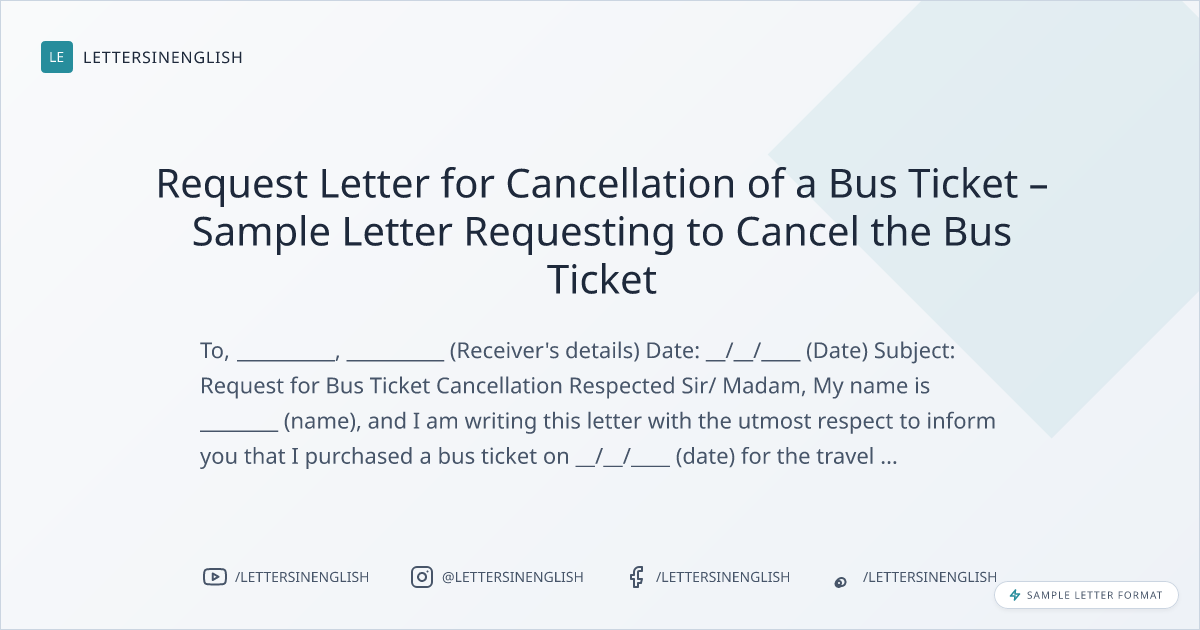 Request Letter for Cancellation of a Bus Ticket – Sample Letter Requesting to Cancel the Bus Ticket