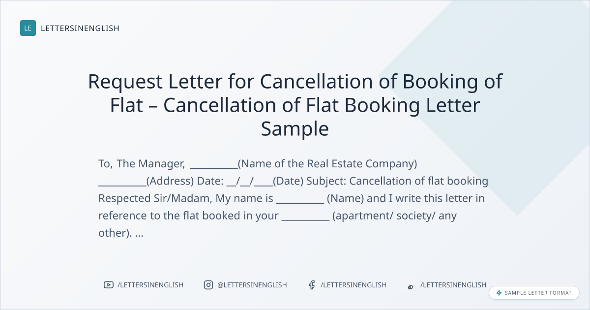 Request Letter for Cancellation of Booking of Flat – Cancellation of Flat Booking Letter Sample