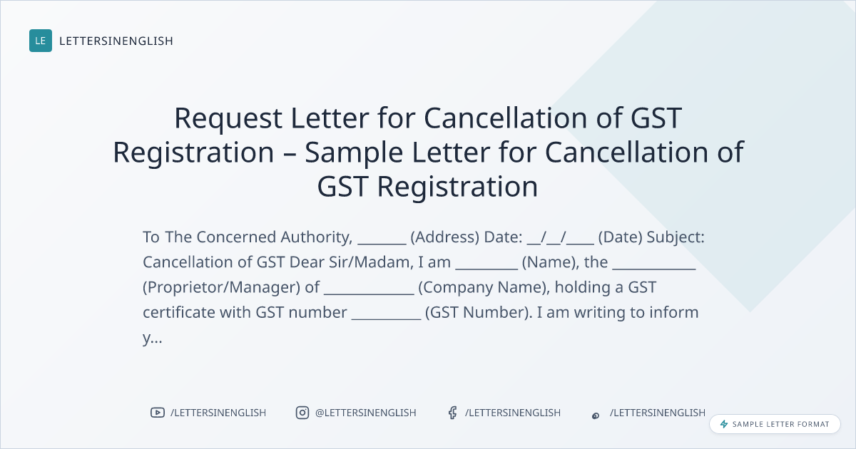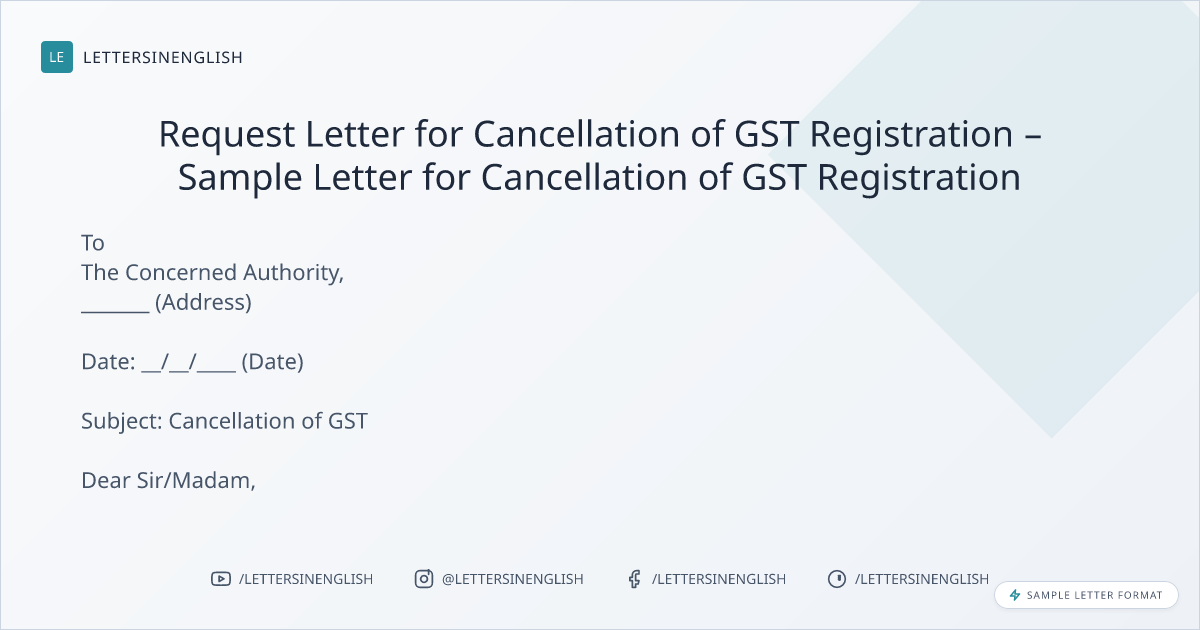 Request Letter for Cancellation of GST Registration – Sample Letter for Cancellation of GST Registration