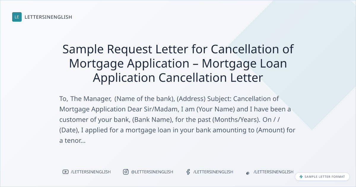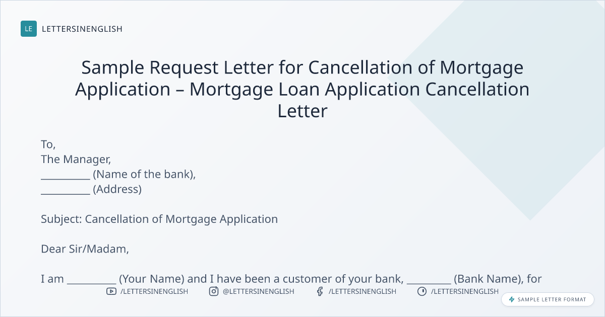 Sample Request Letter for Cancellation of Mortgage Application – Mortgage Loan Application Cancellation Letter