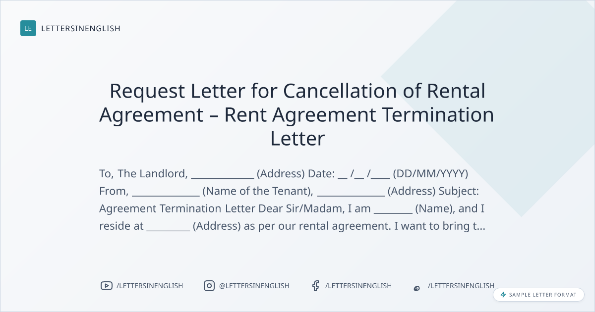Request Letter for Cancellation of Rental Agreement – Rent Agreement Termination Letter