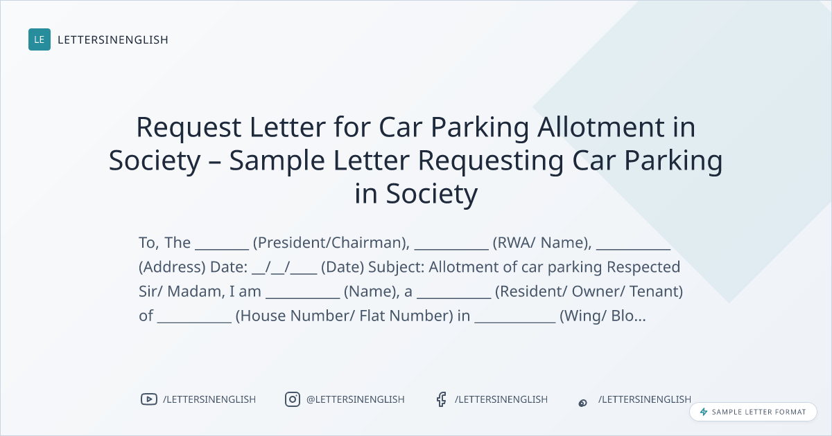 Request Letter for Car Parking Allotment in Society – Sample Letter Requesting Car Parking in Society