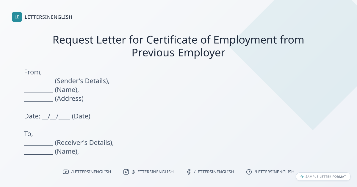 I am writing this letter to request for issuance of an employment certificate in my name. I am in need of this certificate because ________ (maintain personal record/ employment record/ job/ any other).