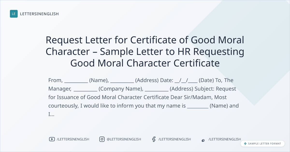 Request Letter for Certificate of Good Moral Character – Sample Letter to HR Requesting Good Moral Character Certificate