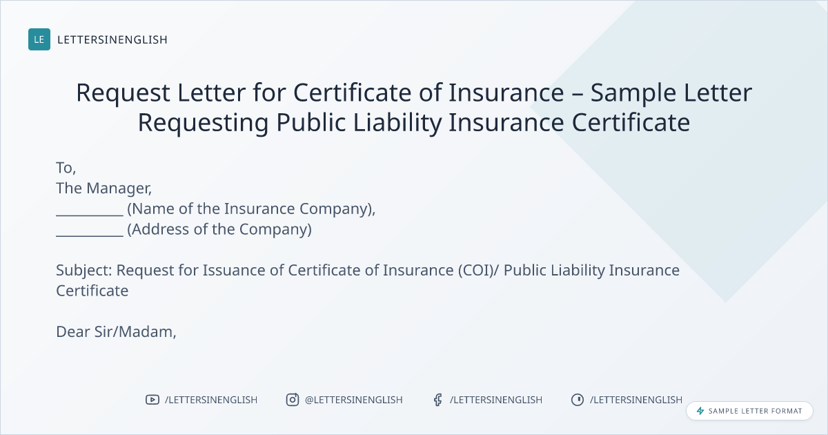 Request Letter for Certificate of Insurance – Sample Letter Requesting Public Liability Insurance Certificate