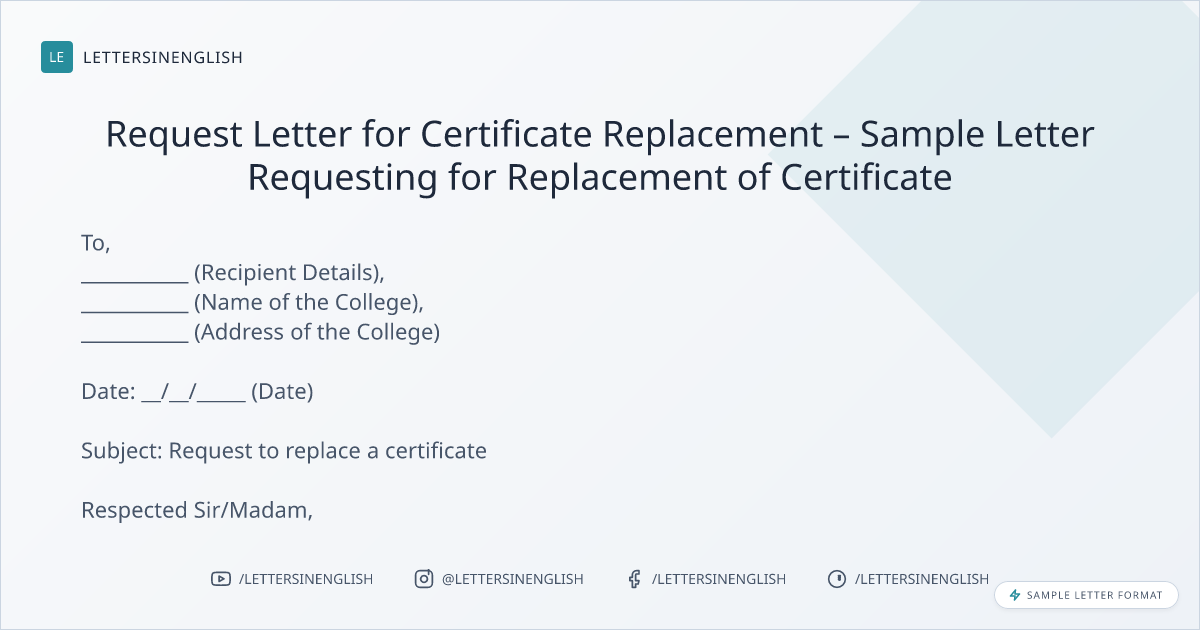 Request Letter for Certificate Replacement – Sample Letter Requesting for Replacement of Certificate