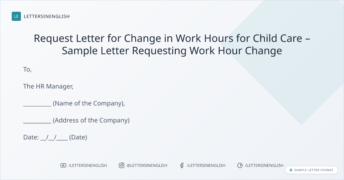 Request Letter for Change in Work Hours for Child Care – Sample Letter Requesting Work Hour Change