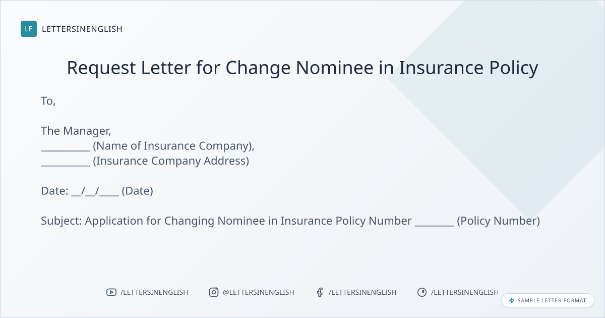 Letter Requesting Nominee Change in Insurance Policy
