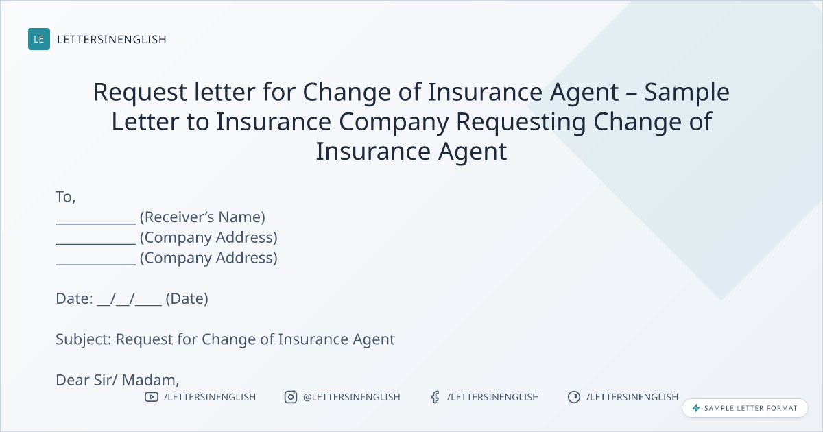 - insurance agent change letter sample