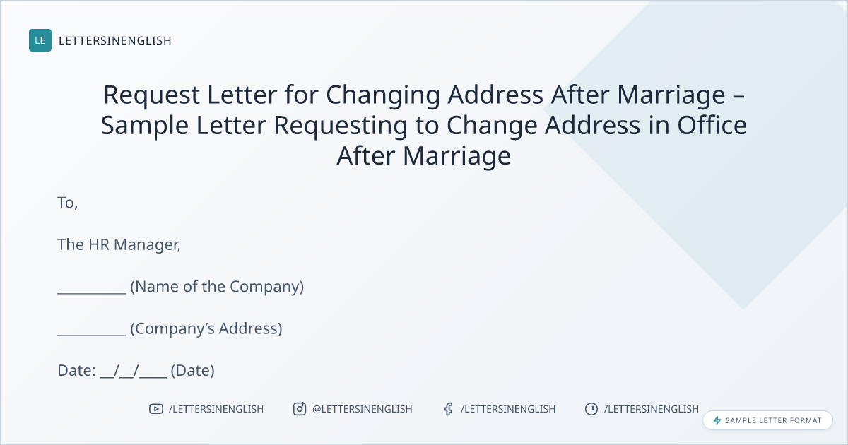 Request Letter for Changing Address After Marriage – Sample Letter Requesting to Change Address in Office After Marriage