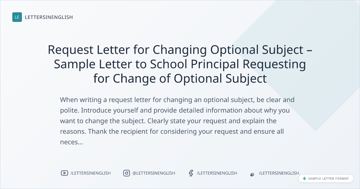 When writing a request letter for changing an optional subject, be clear and polite. Introduce yourself and provide detailed information about why you want to change the subject. Clearly state your request and explain the reasons. Thank the recipient for considering your request and ensure all necessary information and documents are included.