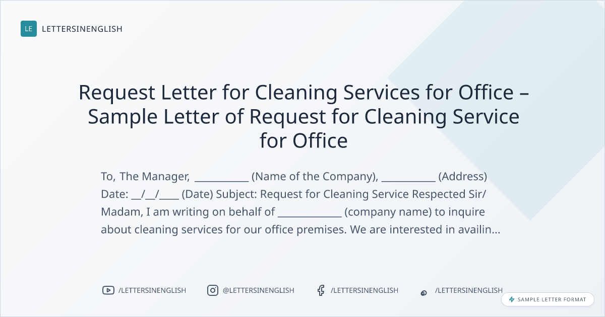 Request Letter for Cleaning Services for Office – Sample Letter of Request for Cleaning Service for Office