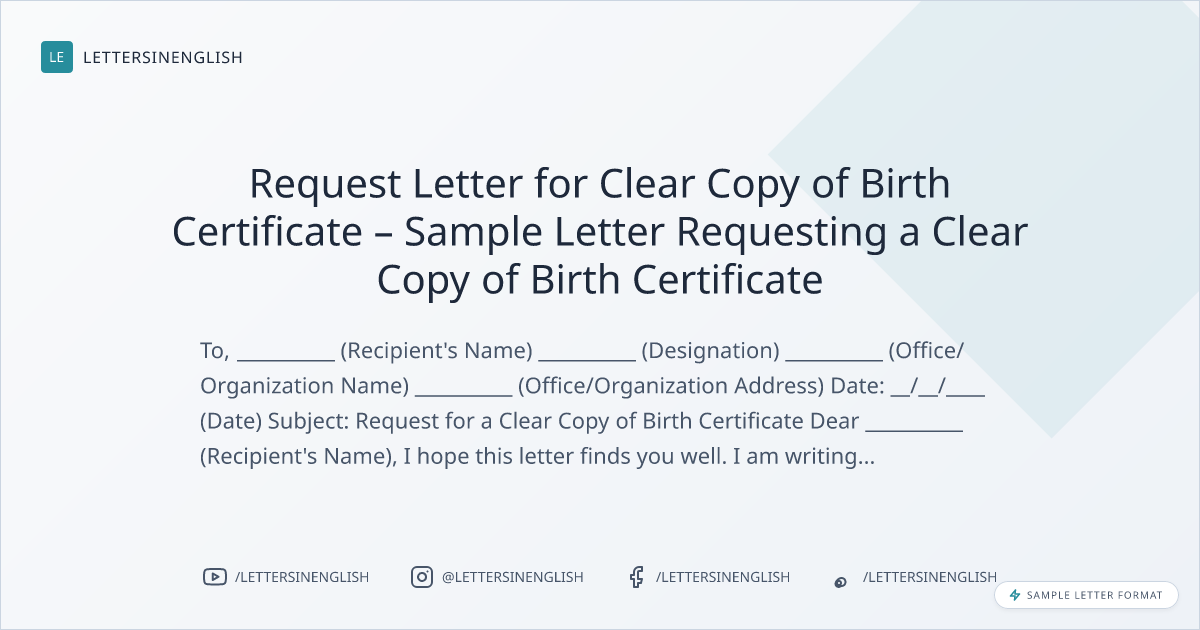 Request Letter for Clear Copy of Birth Certificate – Sample Letter Requesting a Clear Copy of Birth Certificate