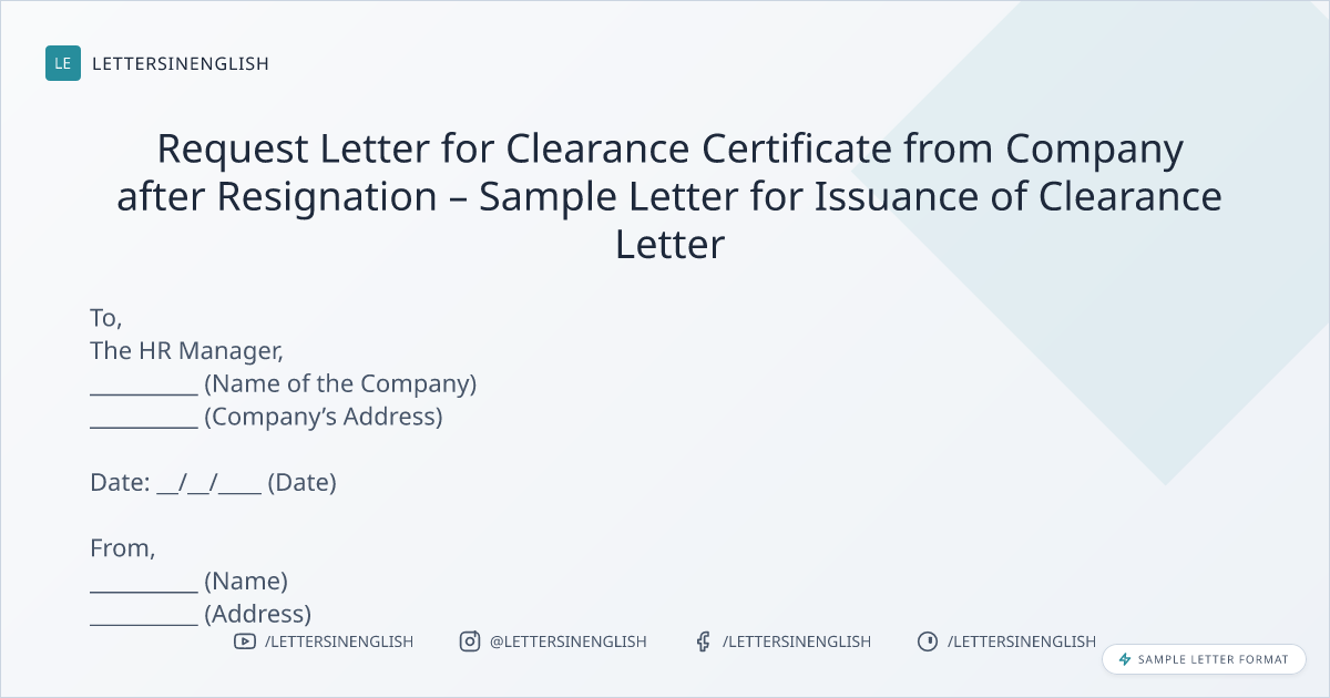 Request Letter for Clearance Certificate from Company after Resignation – Sample Letter for Issuance of Clearance Letter