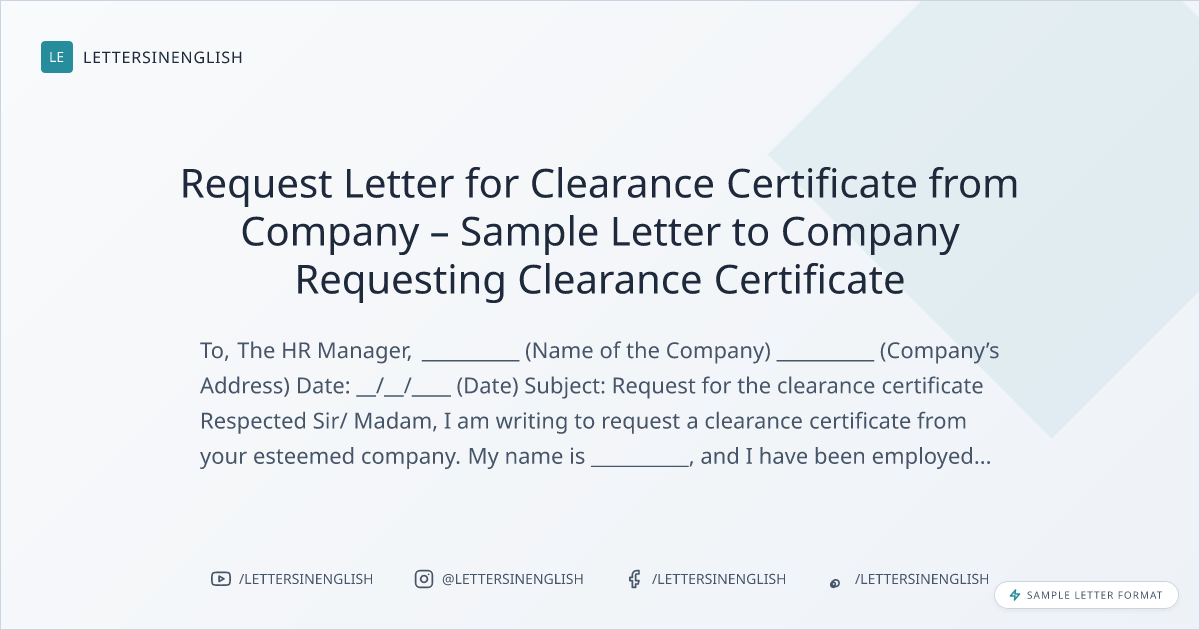 Request Letter for Clearance Certificate from Company – Sample Letter to Company Requesting Clearance Certificate