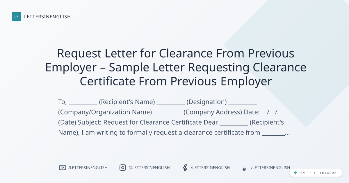 Request Letter for Clearance Certificate from Former Employer