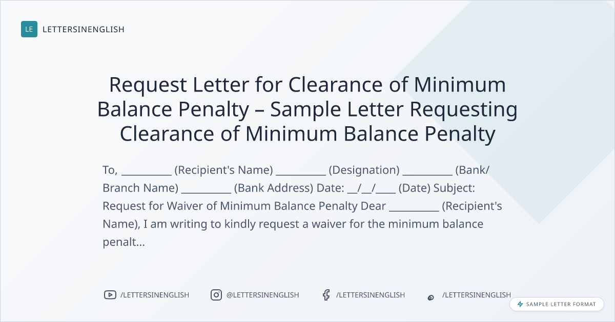 Request Letter for Clearance of Minimum Balance Penalty – Sample Letter Requesting Clearance of Minimum Balance Penalty