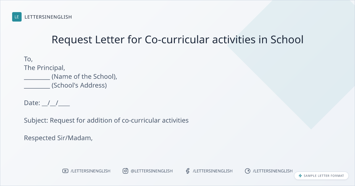 Sample Letter About Co-curricular activities in School