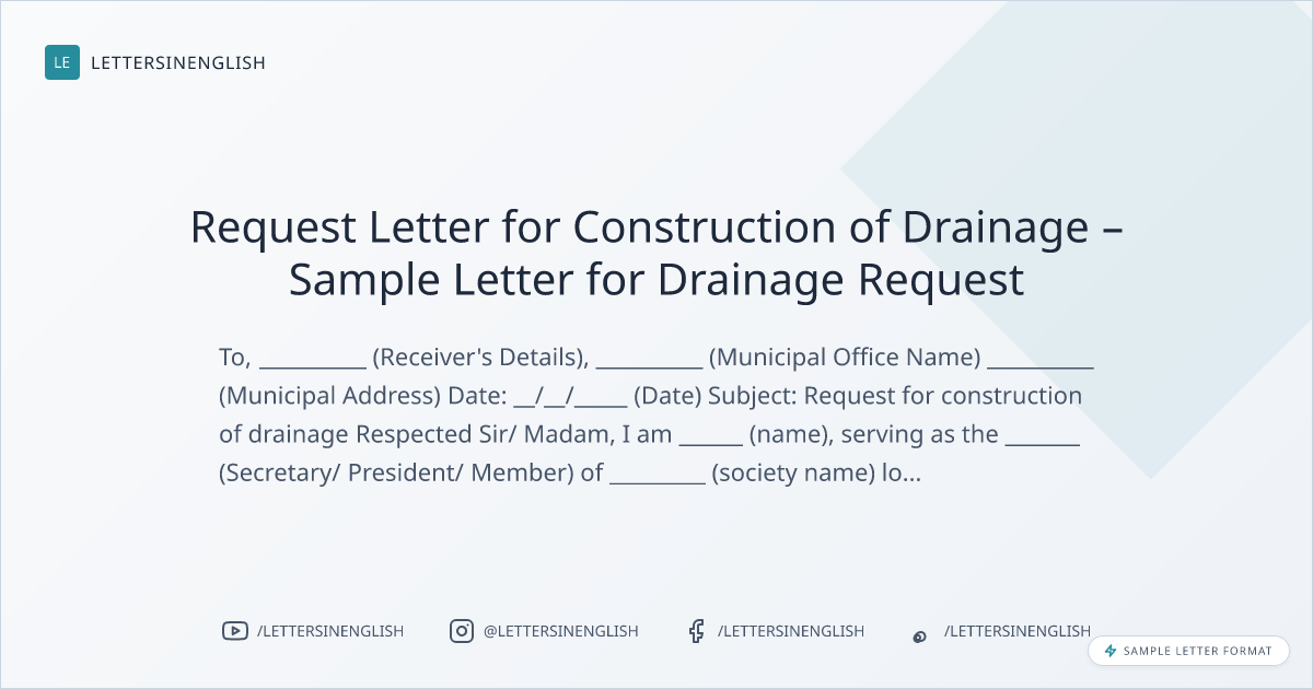 Request Letter for Construction of Drainage – Sample Letter for Drainage Request