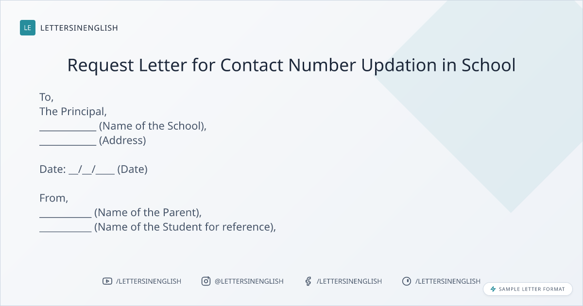 Sample Letter for Contact Number Updation in School