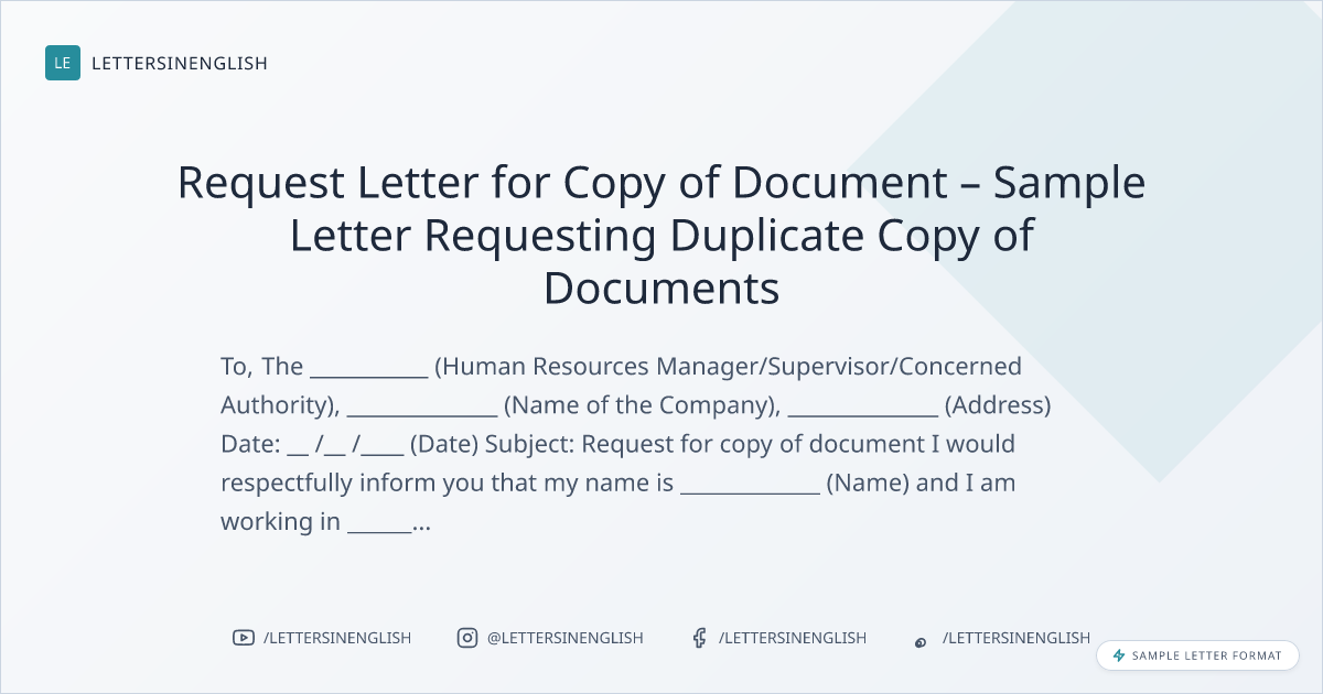 - Sample letter asking a copy of documents