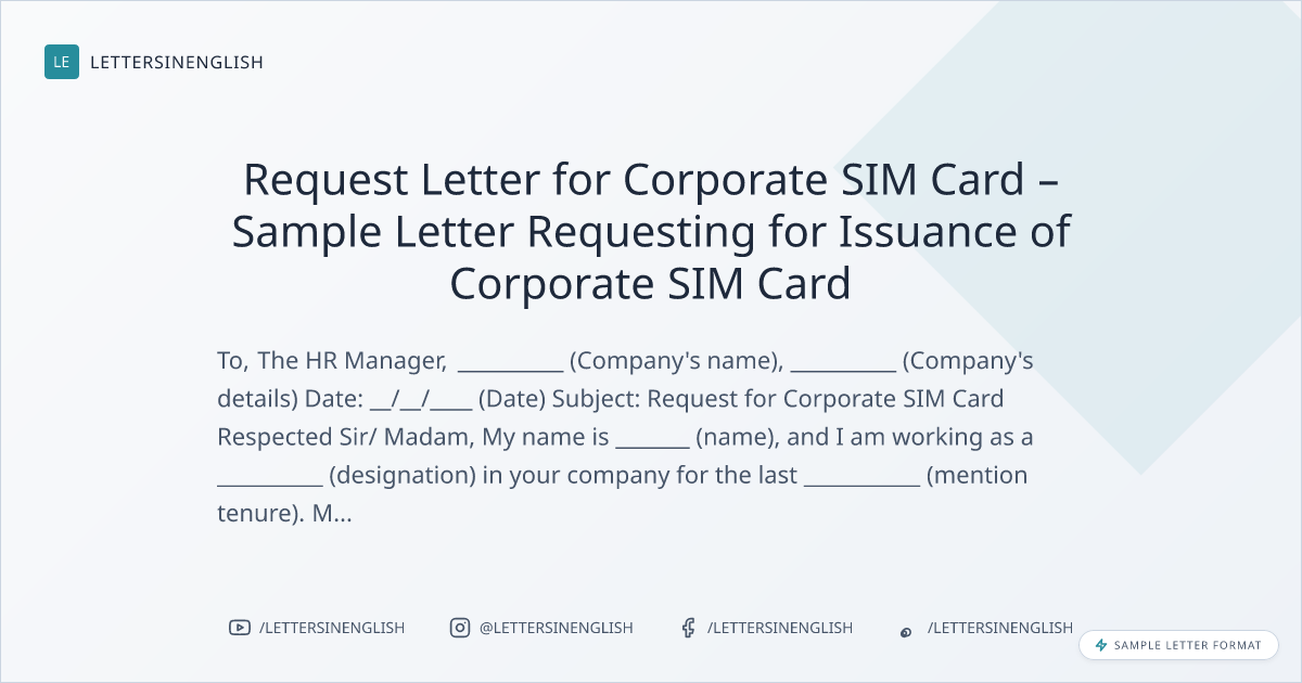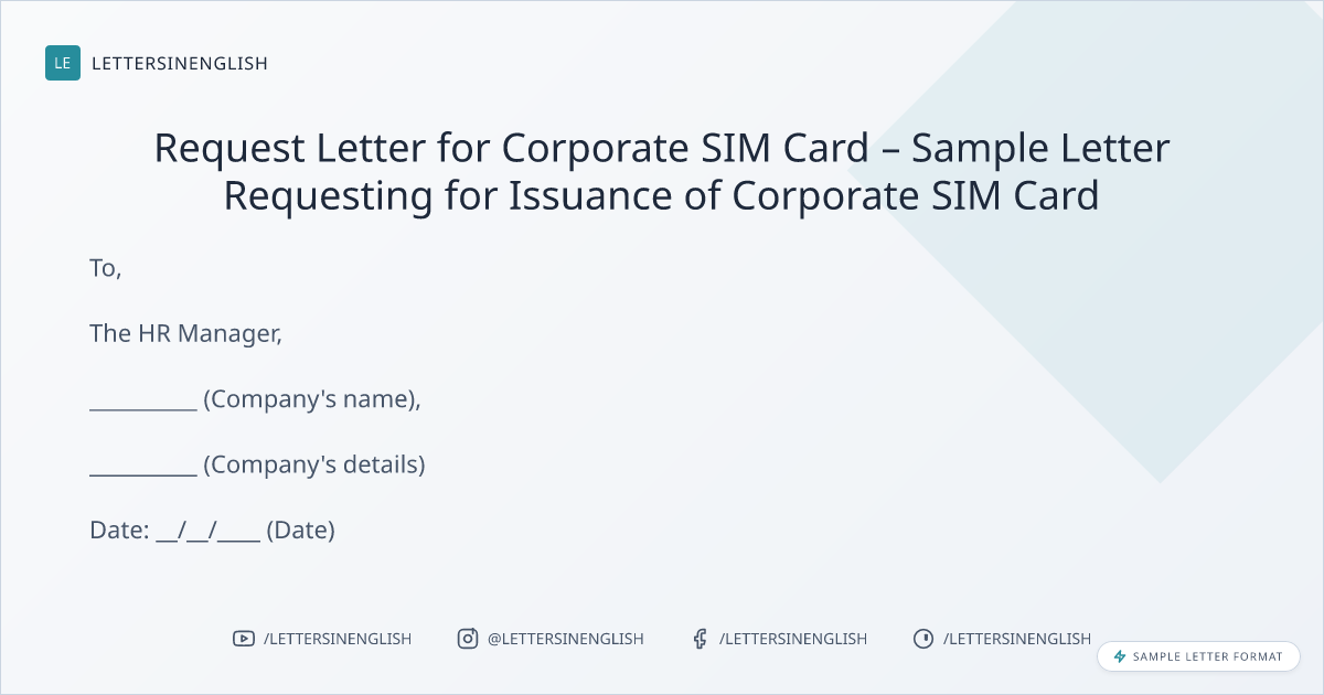 Request Letter for Corporate SIM Card – Sample Letter Requesting for Issuance of Corporate SIM Card