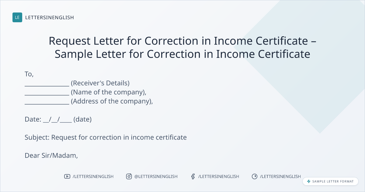 Request Letter for Correction in Income Certificate – Sample Letter for Correction in Income Certificate