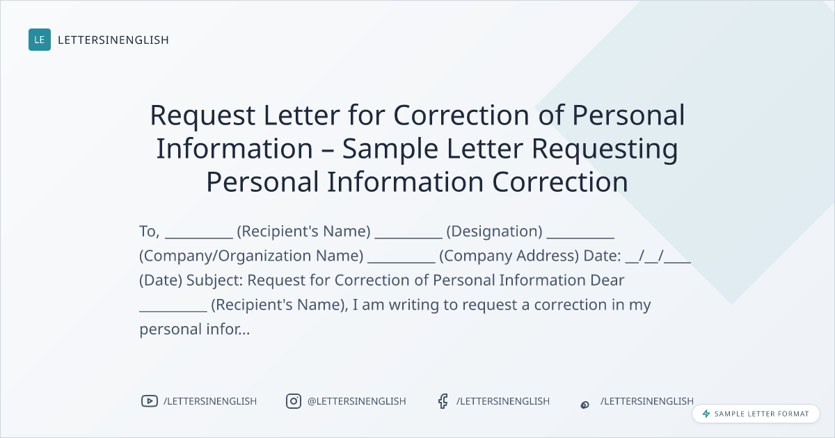 Request Letter for Correction of Personal Information – Sample Letter Requesting Personal Information Correction
