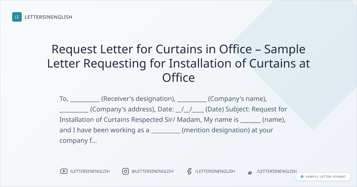 Request Letter for Curtains in Office – Sample Letter Requesting for Installation of Curtains at Office