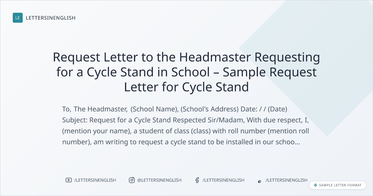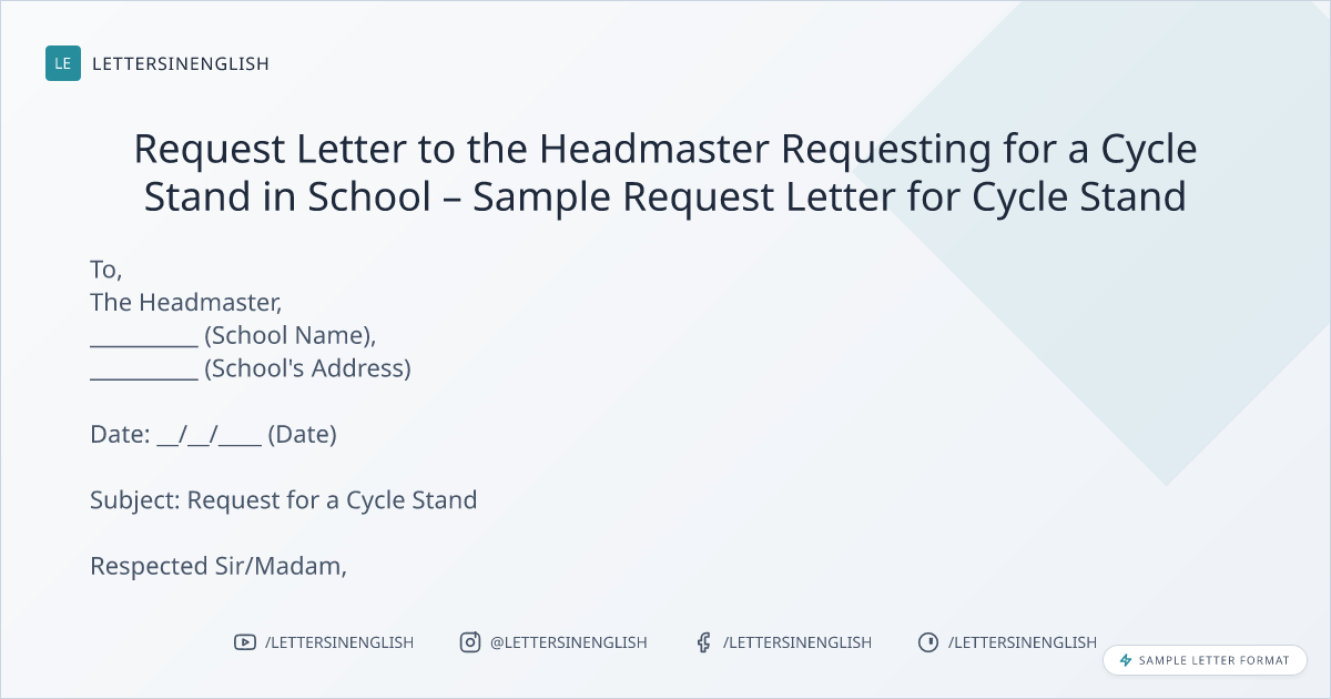 Request Letter to the Headmaster Requesting for a Cycle Stand in School – Sample Request Letter for Cycle Stand