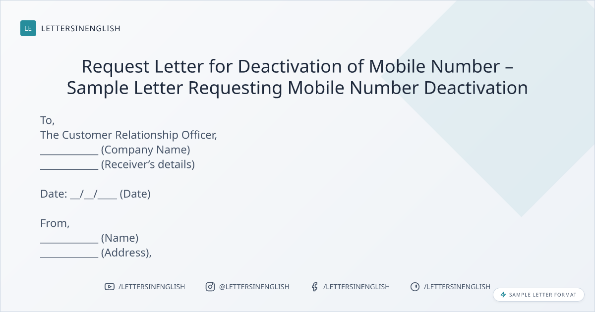 Request Letter for Deactivation of Mobile Number – Sample Letter Requesting Mobile Number Deactivation