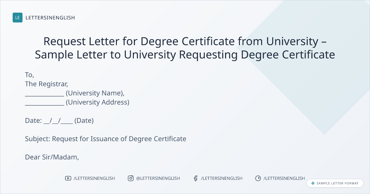 Request Letter for Degree Certificate from University – Sample Letter to University Requesting Degree Certificate