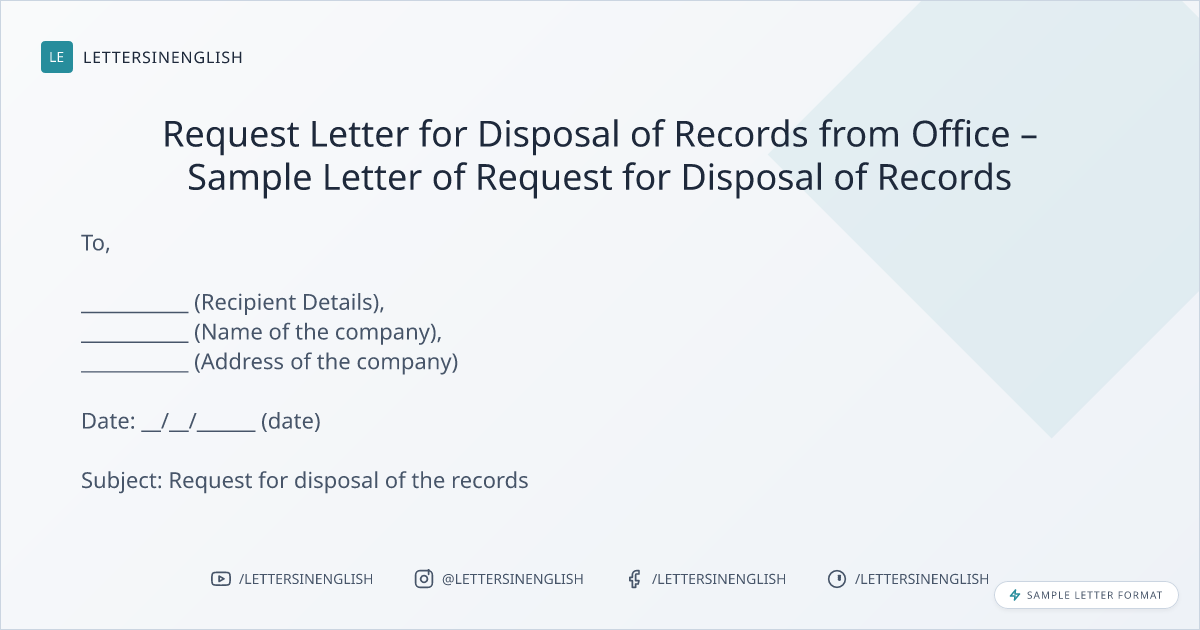 Request Letter for Disposal of Records from Office – Sample Letter of Request for Disposal of Records