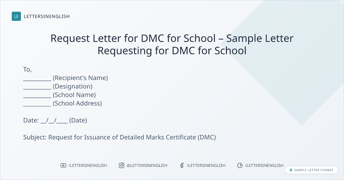 Request Letter for DMC for School – Sample Letter Requesting for DMC for School